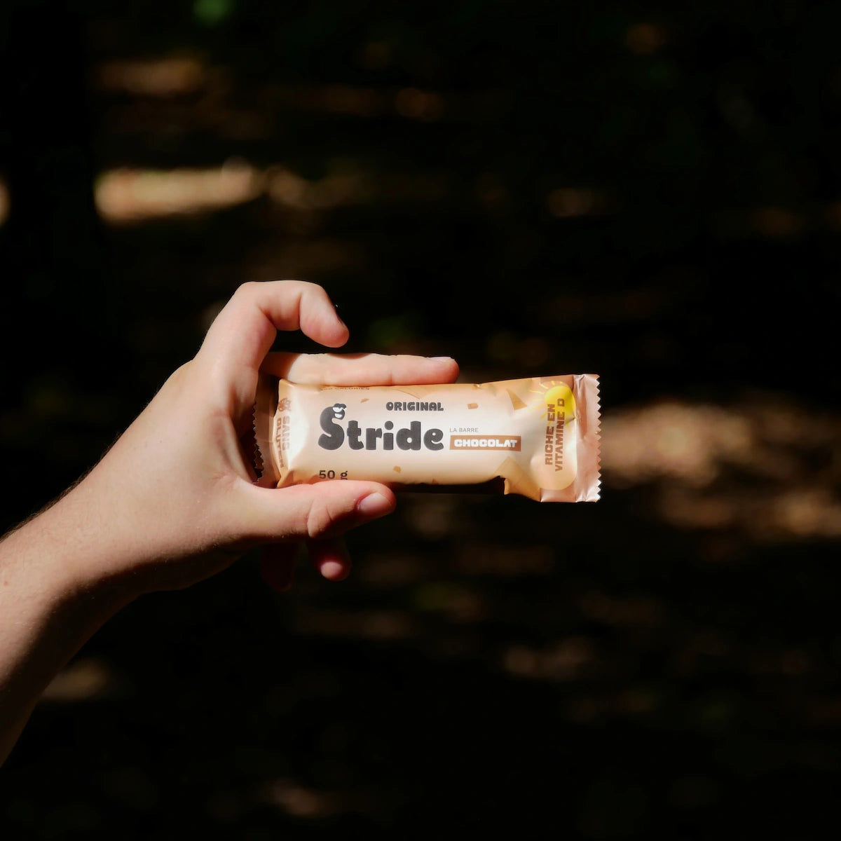 Nouveau format : Barre chocolat Stride 50g – Protéines, énergie naturelle et vitamine D