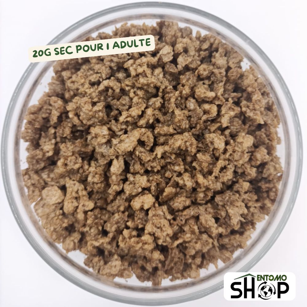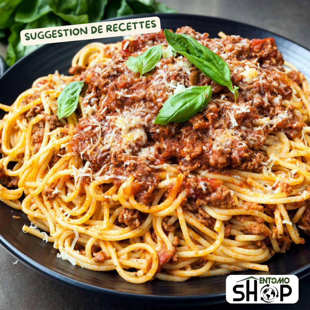 2. Est-ce que c’est difficile à cuisiner si je n’ai jamais mangé d’insectes ? Pas du tout ! C’est l’un de nos produits les plus simples. Il suffit de les réhydrater avec un peu d’eau bouillante (ou un bouillon de légumes pour encore plus de goût) pendant 15 à 20 minutes. Ensuite, vous les utilisez exactement comme de la viande hachée classique. Pas besoin de matériel spécifique ni de techniques de chef.